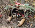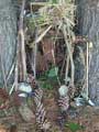 These small structures are made from materials at hand - bark, twigs, stones, pinecones, shells, feathers, etc.. Respect for nature and wildlife is an essential ingredient to be successful in attracting these sprightly visitors. The only guidelines are to refrain from using artificial materials.
