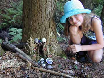 Their charming web site www.fairyhouses.com shows many close-up photos of children, parents and grandparents joining in the cross-generation fun. When Kane gives her book readings, followed by a house building demonstration, it's all systems go! Kids, parents and grandparents all participate in a truly hands-on experience. "I want children to enjoy nature's beauty and help protect it for future generations. Building fairy houses is a perfect opportunity to enjoy the imaginative mystery and lure of fairies, while subtly conveying these important values," she says.